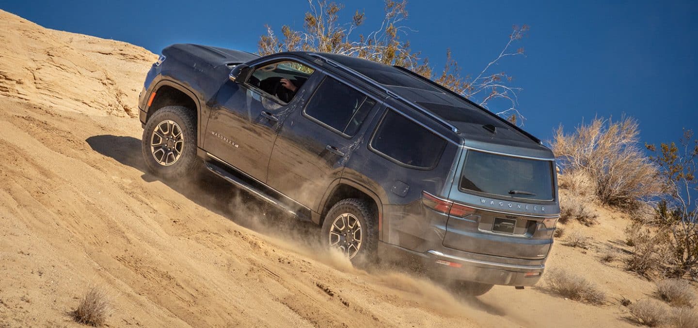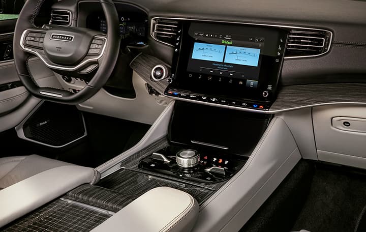 From the outside, the Wagoneer delivers an unmistakable front fascia with bold LED lighting, standard 18-inch wheels, acoustic-laminated front glass, and deep-tint rear glass. Plus, available 20-inch or 22-inch wheels deliver added curb appeal, while standard body side steps increase accessibility for all passengers. And with an available tri-pane panoramic sunroof and standard exterior mirrors that provide heat and automatic dimming functionality, you can enjoy a comfortable drive no matter the weather.