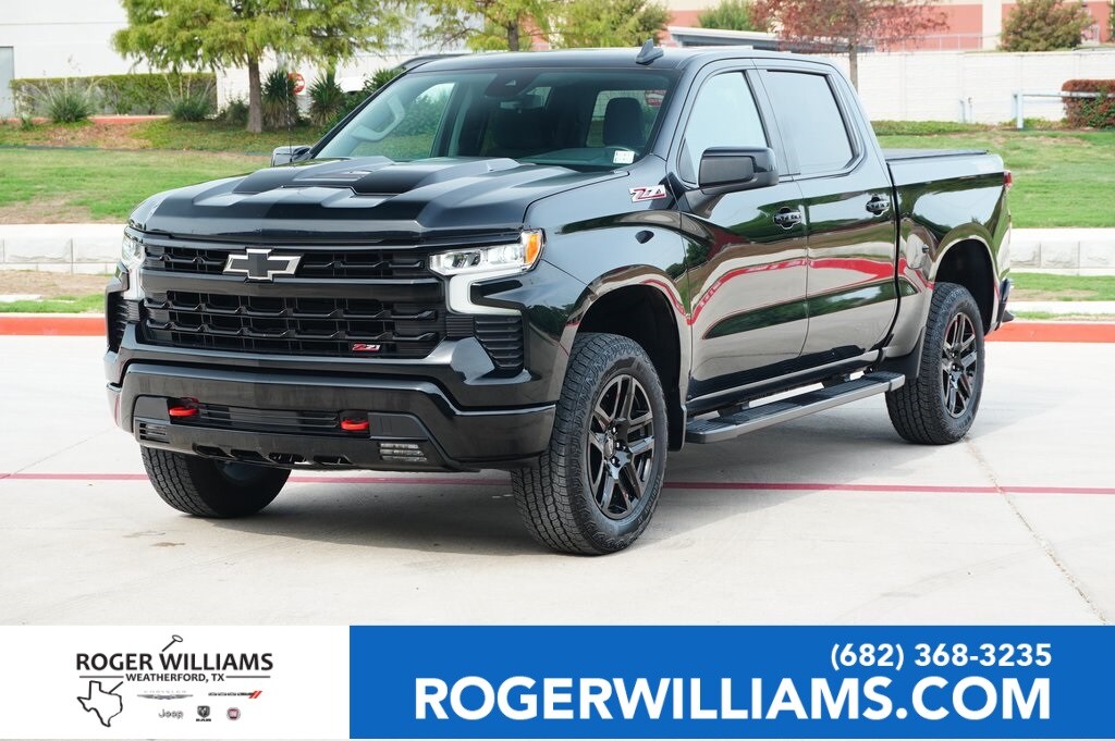 This 2023 Chevrolet Silverado 1500 LT Trail Boss in Black comes with the following features: 2.7L Turbo 8-Speed Automatic 4WD 8-Speed Automatic, 4WD, and Black Cloth Convenience Package (10-Way Power Driver Seat w/Lumbar, 120-Volt Bed Mounted Power Outlet, 120-Volt Instrument Panel Power Outlet, Dual Rear USB Ports (Charge Only), Dual-Zone Automatic Climate Control, Electric Rear-Window Defogger, Heated Driver & Front Outboard Passenger Seats, Heated Steering Wheel, Keyless Open & Start, Remote Vehicle Starter System, Theft Deterrent System (Unauthorized Entry), and Wrapped Steering Wheel), Preferred Equipment Group 2LT (12.3" Multicolor Reconfigurable Digital Display, 6-Speaker Audio System, All-Weather Floor Liner (LPO) (AAK), Auto-Locking Rear Differential, Bluetooth® For Phone, Chevrolet Connected Access Capable, Color-Keyed Carpeting Floor Covering, Compass, Deep-Tinted Glass, Electrical Steering Column Lock, Electronic Cruise Control, EZ Lift Power Lock & Release Tailgate, Front LED Fog Lamps, HD Rear Vision Camera, Heated Power-Adjustable Outside Mirrors, High Gloss Black Mirror Caps, Inside Rear-View Mirror w/Tilt, LED Cargo Area Lighting, OnStar & Chevrolet Connected Services Capable, Performance Red Recovery Hooks, Power Front Windows w/Driver Express Up/Down, Power Front Windows w/Passenger Express Down, Power Rear Windows w/Express Down, Rear 60/40 Folding Bench Seat (Folds Up), SiriusXM w/360L, Standard Tailgate, Steering Wheel Audio Controls, Wi-Fi Hot Spot Capable, and Wireless Phone Projection), Protection Package (Chevytec Spray-On Black Bedliner and Rear Wheelhouse Liners), Suspension Package (Heavy-Duty Air Filter and Hill Descent Control), Trailering Package (Hitch Guidance), 8-Speed Automatic, 4WD, Black Cloth, 220 Amp Alternator, 3.42 Rear Axle Ratio, 4-Wheel Disc Brakes, 40/20/40 Front Split-Bench Seat, 6 Speakers, 6" Rectangular Black Tubular Assist Steps (LPO), ABS brakes, Air Conditioning, Alloy wheels, AM/FM radio: SiriusXM with 360L, Apple CarPlay/Android Auto, Auto High-beam Headlights, Automatic Emergency Braking, Automatic temperature control, Brake assist, Cloth Seat Trim, Delay-off headlights, Driver door bin, Driver vanity mirror, Dual front impact airbags, Dual front side impact airbags, Electronic Stability Control, Following Distance Indicator, Forward Collision Alert, Front anti-roll bar, Front Center Armrest w/Storage, Front dual zone A/C, Front fog lights, Front Pedestrian Braking, Front reading lights, Front wheel independent suspension, Fully automatic headlights, Heated door mirrors, Heated front seats, Heated steering wheel, Illuminated entry, IntelliBeam Automatic High Beam On/Off, Lane Keep Assist w/Lane Departure Warning, Low tire pressure warning, Multi-Flex Tailgate, Not Equipped w/Functional Cab & Bed Power Outlets, Not Equipped w/Steering Column Lock, Occupant sensing airbag, Outside temperature display, Overhead airbag, Overhead console, Panic alarm, Passenger door bin, Passenger vanity mirror, Power door mirrors, Power driver seat, Power steering, Power windows, Premium audio system: Chevrolet Infotainment 3 Premium, Radio data system, Radio: Chevrolet Infotainment 3 Premium System, Rear reading lights, Rear step bumper, Rear window defroster, Remote keyless entry, Security system, Speed control, Speed-sensing steering, Split folding rear seat, Steering wheel mounted audio controls, Tachometer, Telescoping steering wheel, Tilt steering wheel, Traction control, Trip computer, Variably intermittent wipers, Voltmeter, Wheels: 18" x 8.5" Black Painted Aluminum, and Wheels: 20" x 9" High Gloss Black Painted Alum.