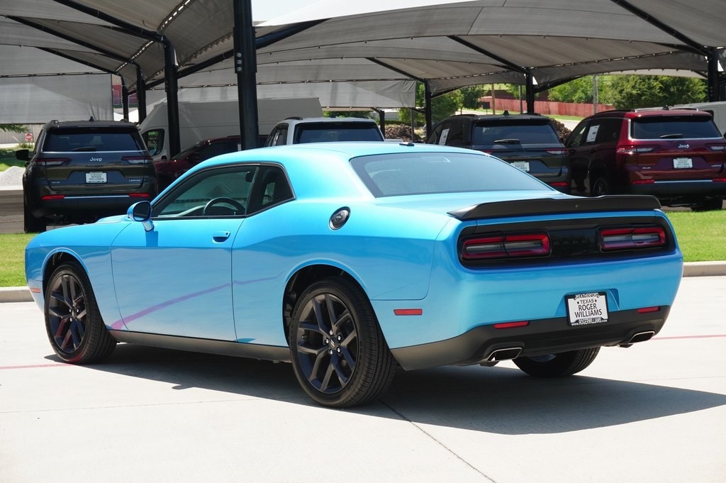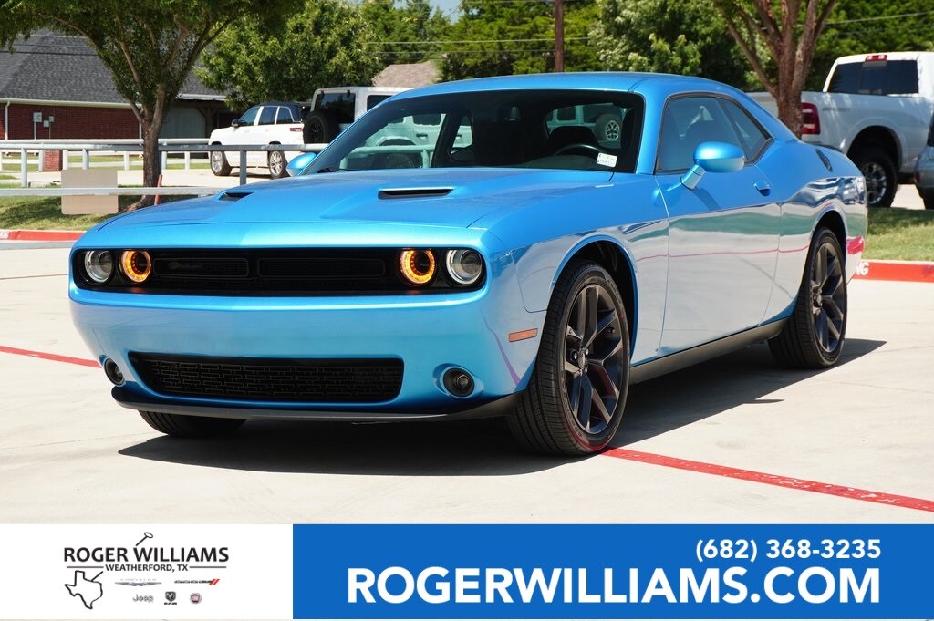 CARFAX One-Owner. Clean CARFAX. This 2023 Dodge Challenger SXT in B5 Blue Pearlcoat comes with the following features: 3.6L V6 24V VVT 8-Speed Automatic RWD Blacktop Package (Black Fuel Filler Door, Black Grille w/Bezel, Challenger Blacktop Grille Badge, Gloss Black I/P Cluster Trim Rings, Leather Performance Steering Wheel, Satin Black Dodge Tail Lamp Badge, and Wheels: 20" x 8.0" Black Noise Painted), Quick Order Package 2EA, 276 Watt Amplifier, 4-Wheel Disc Brakes, 6 Speakers, ABS brakes, Air Conditioning, Alloy wheels, AM/FM radio, Anti-Lock Brakes, Anti-whiplash front head restraints, Apple CarPlay, Apple CarPlay/Android Auto, Auto Leather Wrapped Shift Knob, Auto-dimming Rear-View mirror, Automatic temperature control, AutoStick Automatic Transmission, Body Color Exterior Mirrors, Brake assist, Bumpers: body-color, Delay-off headlights, Driver door bin, Driver vanity mirror, Dual front impact airbags, Dual front side impact airbags, Electronic Stability Control, Exterior Mirrors w/Heating Element, For More Info, Call 800-643-2112, Four wheel independent suspension, Front anti-roll bar, Front Bucket Seats, Front Center Armrest, Front dual zone A/C, Front reading lights, Fully automatic headlights, Google Android Auto, GPS Antenna Input, Heated door mirrors, Houndstooth Cloth Sport Seat, Illuminated entry, Integrated Center Stack Radio, Integrated Voice Command w/Bluetooth, Leather Shift Knob, Low tire pressure warning, Manuf Statement of Origin, Media Hub (2 USB, AUX), Outside temperature display, Overhead airbag, Overhead console, Panic alarm, ParkView Rear Back-Up Camera, Passenger door bin, Passenger vanity mirror, Power door mirrors, Power driver seat, Power steering, Power windows, Radio data system, Radio: Uconnect 4 w/7" Display, Rear anti-roll bar, Rear reading lights, Rear seat center armrest, Rear window defroster, Remote keyless entry, Security system, SiriusXM Radio Service, SiriusXM Satellite Radio, Speed control, Speed-sensing steering, Split folding rear seat, Spoiler, Steering wheel mounted audio controls, Tachometer, Telescoping steering wheel, Tilt steering wheel, Tip Start, Traction control, Trip computer, USB Host Flip, Variably intermittent wipers, and Wheels: 18" x 7.5" Aluminum Fine Silver.