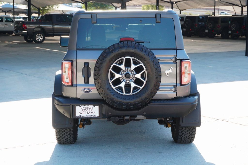 CARFAX One-Owner. Clean CARFAX. This 2024 Ford Bronco Badlands in Gray Metallic comes with the following features: 2.7L EcoBoost V6 10-Speed Automatic 4WD Equipment Group 334A High/Lux Package (10 Speakers w/Subwoofer, 2-Door Intelligent Access w/Lock/Unlock, 360-Degree Camera, Adaptive Cruise Control, Additional Sound Deadening, Ambient Footwell Lighting, Auto-Dimming Interior Rear-View Mirror, Dr & Pass Illuminated Sliding Visor Vanity Mirrors, Dual Smart Charging USB Ports, Dual-Zone Electronic Automatic Temperature Control, Evasive Steering Assist, Front Parking Sensors, Front Row Heated Seats, Heated Steering Wheel, Information on Demand Panel, Power Outlet - Back Side of Center Floor Console, Radio: B&O Sound System by Bang & Olufsen, Rear Parking Sensors, Sideview Mirrors, Universal Garage Door Opener, and Wireless Charging Pad), 4-Wheel Disc Brakes, 4.7 Axle Ratio, 7 Speakers, ABS brakes, Air Conditioning, Alloy wheels, AM/FM radio: SiriusXM with 360L, AM/FM Stereo, Auto High-Beam Headlamps, Auto High-beam Headlights, BLIS Blind Spot Information System, Brake assist, Carbonized Gray Molded-In-Color Hard Top, Compass, Delay-off headlights, Driver door bin, Driver vanity mirror, Dual front impact airbags, Dual front side impact airbags, Electronic Stability Control, Emergency communication system: 911 Assist, Exterior Parking Camera Rear, Front anti-roll bar, Front Bucket Seats, Front Center Armrest, Front License Plate Bracket, Front reading lights, Front Row Top Panels Storage Bag, Front wheel independent suspension, Fully automatic headlights, Hard Top Sound Deadening Headliner, Heated door mirrors, Illuminated entry, Integrated roll-over protection, Lane-Keeping System, Leather Shift Knob, Low tire pressure warning, Marine Grade Vinyl Bucket Seats, Occupant sensing airbag, Outside temperature display, Overhead airbag, Overhead console, Panic alarm, Passenger door bin, Passenger vanity mirror, Power door mirrors, Power steering, Power windows, Pre-Collision Assist w/Automatic Emergency Braking, Radio data system, Rear-View Camera, Rear-Window Defroster & Washer, Remote keyless entry, Security system, SiriusXM Radio w/360L, Speed control, Split folding rear seat, Steering wheel mounted audio controls, SYNC 4, Tachometer, Telescoping steering wheel, Tilt steering wheel, Traction control, Trip computer, Variably intermittent wipers, Voltmeter, and Wheels: 17" Machined Carbonized Aluminum.