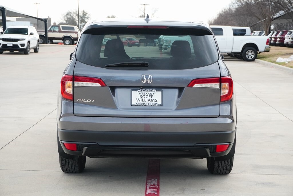 This 2019 Honda Pilot LX in Gray comes with the following features: 3.5L V6 24V SOHC i-VTEC 6-Speed Automatic FWD 18" Alloy Wheels, 3rd row seats: split-bench, 4-Wheel Disc Brakes, 4.25 Axle Ratio, 7 Speakers, ABS brakes, Air Conditioning, Alloy wheels, AM/FM radio, Auto High-beam Headlights, Brake assist, Bumpers: body-color, Cloth Seat Trim, Delay-off headlights, Driver door bin, Driver vanity mirror, Dual front impact airbags, Dual front side impact airbags, Electronic Stability Control, Emergency communication system: HondaLink Assist, Exterior Parking Camera Rear, Forward collision: Collision Mitigation Braking System (CMBS) + FCW mitigation, Four wheel independent suspension, Front anti-roll bar, Front Bucket Seats, Front Center Armrest, Front reading lights, Fully automatic headlights, Illuminated entry, Lane departure: Lane Keeping Assist System (LKAS) active, Low tire pressure warning, Occupant sensing airbag, Overhead airbag, Overhead console, Panic alarm, Passenger door bin, Passenger vanity mirror, Power door mirrors, Power steering, Power windows, Radio data system, Radio: AM/FM Audio System, Rear anti-roll bar, Rear reading lights, Rear seat center armrest, Rear window defroster, Rear window wiper, Reclining 3rd row seat, Remote keyless entry, Security system, Speed control, Speed-sensing steering, Speed-Sensitive Wipers, Split folding rear seat, Spoiler, Steering wheel mounted audio controls, Tachometer, Telescoping steering wheel, Tilt steering wheel, Traction control, Trip computer, and Variably intermittent wipers.