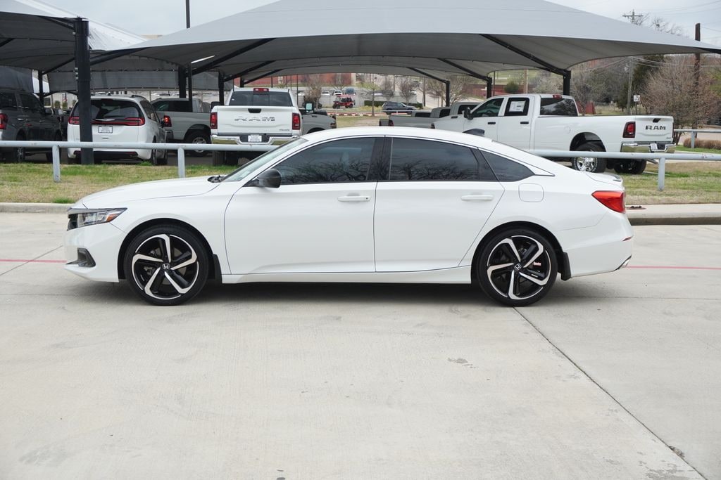 Recent Arrival! CARFAX One-Owner. Clean CARFAX. This 2022 Honda Accord Sport Special Edition in White comes with the following features: 1.5T I4 DOHC 16V Turbocharged VTEC CVT FWD Black Leather Black Leather, 4-Wheel Disc Brakes, 8 Speakers, ABS brakes, Adaptive Cruise Control: Adaptive Cruise Control (ACC) with Low-Speed Follow, Air Conditioning, Alloy wheels, AM/FM radio, Apple CarPlay/Android Auto, Auto High-beam Headlights, Automatic temperature control, Brake assist, Bumpers: body-color, Delay-off headlights, Driver door bin, Driver vanity mirror, Dual front impact airbags, Dual front side impact airbags, Electronic Stability Control, Emergency communication system: HondaLink, Exterior Parking Camera Rear, Forward collision: Collision Mitigation Braking System (CMBS) + FCW mitigation, Four wheel independent suspension, Front anti-roll bar, Front Bucket Seats, Front Center Armrest, Front dual zone A/C, Front fog lights, Front reading lights, Fully automatic headlights, Heated door mirrors, Heated Front Bucket Seats, Heated front seats, Illuminated entry, Knee airbag, Lane Departure Warning System, Leather Shift Knob, Leather steering wheel, Low tire pressure warning, Occupant sensing airbag, Outside temperature display, Overhead airbag, Overhead console, Panic alarm, Passenger door bin, Passenger vanity mirror, Perforated Leather Seat Trim, Power door mirrors, Power driver seat, Power passenger seat, Power steering, Power windows, Radio data system, Radio: 180-Watt AM/FM Audio System, Rear anti-roll bar, Rear seat center armrest, Rear window defroster, Remote keyless entry, Security system, Speed control, Speed-sensing steering, Speed-Sensitive Wipers, Split folding rear seat, Spoiler, Steering wheel mounted audio controls, Tachometer, Telescoping steering wheel, Tilt steering wheel, Traction control, Trip computer, Variably intermittent wipers, and Wheels: 19" Machine-Finished Alloy w/Black Inserts.