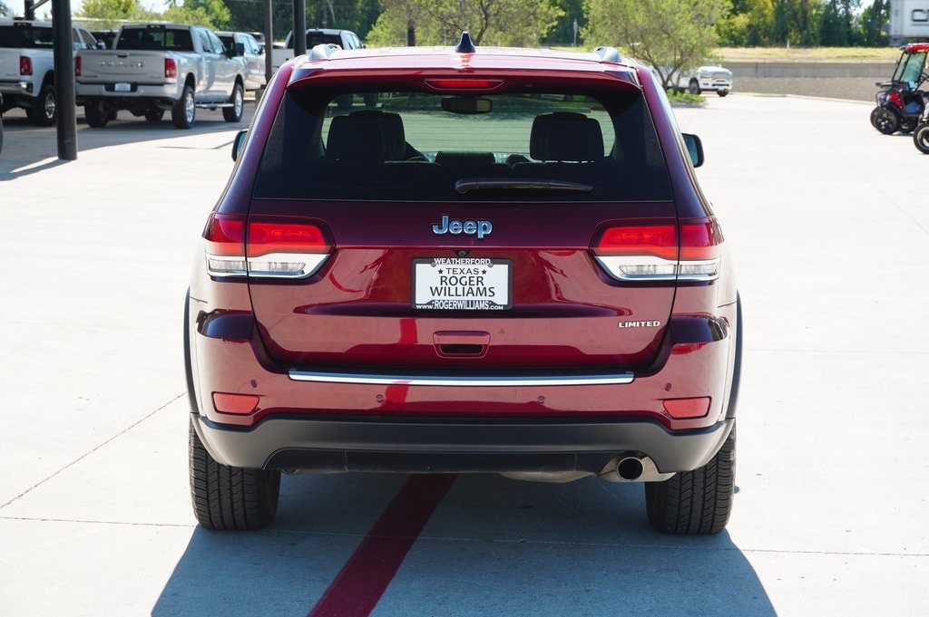 CARFAX One-Owner. This 2021 Jeep Grand Cherokee Limited in Velvet Red Pearlcoat comes with the following features: 3.6L V6 24V VVT 8-Speed Automatic RWD Luxury Group II (Cargo Compartment Cover, Dual-Pane Panoramic Sunroof, Heated Second Row Seats, Leather Trimmed Seats w/Perforated Inserts, Power Tilt/Telescope Steering Column, Rain Sensitive Windshield Wipers, and Ventilated Front Seats), Quick Order Package 2BH, Sun & Sound Group (506 Watt Amplifier, Active Noise Control System, and Premium Alpine Speaker System), 1-Year SiriusXM Guardian Trial, 3.27 Rear Axle Ratio, 4-Wheel Disc Brakes, 4G LTE Wi-Fi Hot Spot, 6 Speakers, 8.4" Touchscreen Display, ABS brakes, Air Conditioning, Alloy wheels, AM/FM radio: SiriusXM, Anti-whiplash front head restraints, Apple CarPlay, Apple CarPlay/Android Auto, Audio memory, Auto-dimming door mirrors, Auto-dimming Rear-View mirror, Automatic temperature control, Brake assist, Bumpers: body-color, Compass, Delay-off headlights, Driver door bin, Driver vanity mirror, Dual front impact airbags, Dual front side impact airbags, Eco Suspension I, Electronic Stability Control, Emergency communication system: SiriusXM Guardian, Four wheel independent suspension, Front anti-roll bar, Front Bucket Seats, Front Center Armrest w/Storage, Front dual zone A/C, Front fog lights, Front License Plate Bracket, Front reading lights, Fully automatic headlights, Garage door transmitter, Google Android Auto, GPS Antenna Input, GPS Navigation, HD Radio, Heated door mirrors, Heated front seats, Heated steering wheel, Illuminated entry, Integrated Voice Command w/Bluetooth, Knee airbag, Leather Shift Knob, Leather Trimmed Bucket Seats, Low tire pressure warning, Memory seat, Navigation System, Occupant sensing airbag, Outside temperature display, Overhead airbag, Overhead console, Panic alarm, ParkView Rear Back-Up Camera, Passenger door bin, Passenger vanity mirror, Power door mirrors, Power driver seat, Power Liftgate, Power moonroof, Power passenger seat, Power steering, Power windows, Radio data system, Radio: Uconnect 4C Nav w/8.4" Display, Rear anti-roll bar, Rear reading lights, Rear seat center armrest, Rear window defroster, Rear window wiper, Remote keyless entry, Roof rack: rails only, Security system, SiriusXM Satellite Radio, SiriusXM Traffic Plus, SiriusXM Travel Link, Speed control, Speed-sensing steering, Speed-Sensitive Wipers, Split folding rear seat, Spoiler, Steering wheel mounted audio controls, Tachometer, Telescoping steering wheel, Tilt steering wheel, Traction control, Trip computer, Turn signal indicator mirrors, Variably intermittent wipers, and Wheels: 18" x 8.0" Tech Gray Diamond Cut.