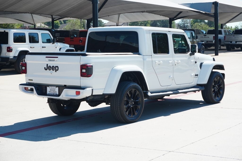 CARFAX One-Owner. Clean CARFAX. This 2023 Jeep Gladiator High Altitude in Bright White Clearcoat comes with the following features: 3.0L V6 Turbodiesel 8-Speed Automatic 4WD Auxiliary Switch Group (240 Amp Alternator and Auxiliary Switches), High Altitude Package, LED Lighting Group (Daytime Running Lamps LED Accents, Front LED Fog Lamps, LED Park Turn Lamps, LED Premium Reflector Headlamps, and LED Taillamps), Quick Order Package 26N High Altitude (ABS 4-Wheel HD Disc Brakes w/CI Knuckle, Body Color 3-Piece Hard Top, Body Color Front Bumper, Body Color Grille w/Gloss Black Rings, Body Color Rear Bumper w/Step Pads, Body-Color Door & Tailgate Handles, Caramel Interior Accents, Dana M210 Wide Front Axle, Dana M220 Wide Rear Axle, Exterior Mirrors w/Supplemental Signals, Freedom Panel Storage Bag, Full Body Color Fender Flares, Full Length Floor Console Premium Armrest, Gloss Black Limited Badge, Gray/Black Trail Rated Badge, Leather Wrapped Park Brake Handle, Leather Wrapped Shift Knob, Nappa Leather Seats, No Soft Top, Premium Dark Exterior Accents, Rear Armrest w/Cupholder Seat, Rear Sliding Window, Rear Window Defroster, Side Steps, Sport Front Shock Absorbers, Sport Rear Shock Absorbers, Sport Suspension, Wheels: 20" x 8" Gloss Black Aluminum, and Wrapped I/P Bezel w/Caramel Stitch), Safety Group (Blind Spot & Cross Path Detection and ParkSense Rear Park Assist System), Trailer Tow Package (Class IV Receiver Hitch, Heavy-Duty Engine Cooling, and Trailer Hitch Zoom), 3.73 Rear Axle Ratio, 4-Wheel Disc Brakes, 9 Speakers, ABS brakes, Air Conditioning, Alloy wheels, AM/FM radio: SiriusXM, Anti-Spin Differential Rear Axle, Apple CarPlay/Android Auto, Auto-dimming Rear-View mirror, Automatic temperature control, Brake assist, Compass, Delay-off headlights, Driver door bin, Driver vanity mirror, Dual front impact airbags, Dual front side impact airbags, Electronic Stability Control, Emergency communication system, Front anti-roll bar, Front Bucket Seats, Front Center Armrest w/Storage, Front dual zone A/C, Front fog lights, Front License Plate Bracket, Front reading lights, Fully automatic headlights, Garage door transmitter, Heated door mirrors, Illuminated entry, Integrated roll-over protection, Low tire pressure warning, MOPAR All-Weather Slush Mats, Navigation System, Normal Duty Plus Suspension (DISC), Occupant sensing airbag, Outside temperature display, Overland Cloth Bucket Seats (DISC), Panic alarm, ParkView Rear Back-Up Camera, Passenger door bin, Passenger vanity mirror, Power door mirrors, Power steering, Power windows, Radio data system, Radio: Uconnect 4C Nav w/8.4" Display, Rear anti-roll bar, Rear reading lights, Remote keyless entry, Security system, Selec-Speed Control, Speed control, Split folding rear seat, Steering wheel mounted audio controls, Tachometer, Telescoping steering wheel, Tilt steering wheel, Traction control, Trip computer, Variably intermittent wipers, Voltmeter, and Wheels: 18" x 7.5" Granite Crystal Aluminum (DISC)