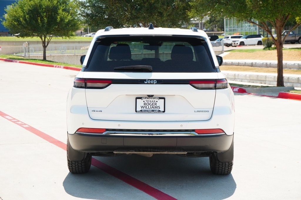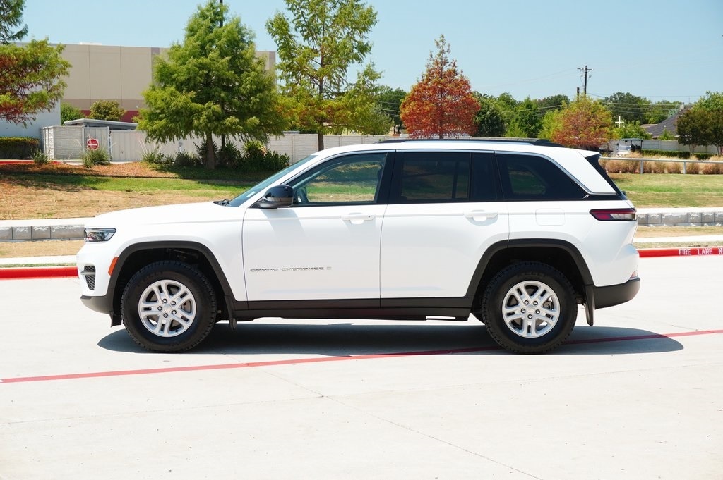 CARFAX One-Owner. This 2023 Jeep Grand Cherokee Laredo in Bright White Clearcoat comes with the following features: 3.6L V6 24V VVT 8-Speed Automatic 4WD 4WD MOPAR Finishing Package (MOPAR Front Splash Guards, MOPAR Paint Protection Film, and MOPAR Rear Splash Guards w/Jeep Logo), Quick Order Package 23A Laredo, 4WD, 3.45 Rear Axle Ratio, 4-Wheel Disc Brakes, 6 Speakers, ABS brakes, Air Conditioning, Alloy wheels, Anti-whiplash front head restraints, Automatic temperature control, Brake assist, Bumpers: body-color, Cloth Seats, Compass, Delay-off headlights, Driver door bin, Driver vanity mirror, Dual front impact airbags, Dual front side impact airbags, Electronic Stability Control, Emergency communication system, Four wheel independent suspension, Front anti-roll bar, Front Bucket Seats, Front Center Armrest w/Storage, Front dual zone A/C, Front License Plate Bracket, Front reading lights, Fully automatic headlights, Heated door mirrors, Illuminated entry, Knee airbag, Low tire pressure warning, Molded In Color Black/Gloss Black Roof Rails, Normal Duty Suspension, Occupant sensing airbag, Outside temperature display, Overhead airbag, Overhead console, Panic alarm, ParkView Rear Back-Up Camera, Passenger door bin, Passenger vanity mirror, Power door mirrors, Power driver seat, Power steering, Power windows, Radio data system, Radio: Uconnect 5 w/8.4" Display, Rear anti-roll bar, Rear reading lights, Rear window defroster, Rear window wiper, Remote keyless entry, Security system, Speed control, Speed-Sensitive Wipers, Split folding rear seat, Spoiler, Steering wheel mounted audio controls, Tachometer, Telescoping steering wheel, Tilt steering wheel, Traction control, Trip computer, Variably intermittent wipers, Voltmeter, and Wheels: 17" x 6.5" Fully Painted Aluminum.