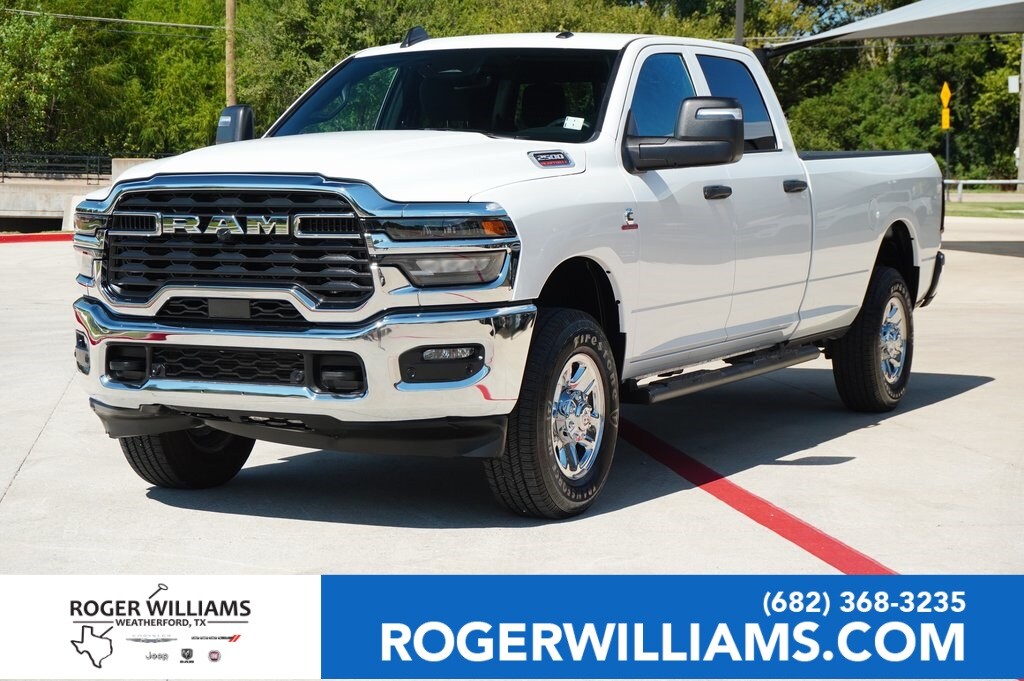 Clean CARFAX. This 2025 Ram 2500 Tradesman in Bright White Clearcoat comes with the following features: 6.7L I6 8-Speed Automatic 4WD Quick Order Package 24A Tradesman, Tradesman Level 2 Equipment Group (115V Auxiliary Front Power Outlet, 12" Touchscreen Display, 2 Way Rear Headrest Seat, 4 Way Front Headrests, 40/20/40 Split Bench Seat, 400W Inverter, 4G LTE Wi-Fi Hot Spot, Air Conditioning ATC w/Dual Zone Control, Alexa Built-In, Anti-Spin Differential Rear Axle, Apple CarPlay, Auto-Dimming Rear-View Mirror, Black Exterior Mirrors, Bright Front Bumper, Bright Rear Bumper, Carpet Floor Covering, Center Hub, Chrome Grille Surround, Cloth 40/20/40 Bench Seat, Connected Travel & Traffic Services, Connectivity - US/Canada, Disassociated Touchscreen Display, Emergency Vehicle Alert System (EVAS), Exterior 115V AC Outlet, Exterior Mirrors Courtesy Lamps, Exterior Mirrors w/Heating Element, Exterior Mirrors w/Supplemental Signals, Front & Rear Floor Mats, Front Armrest w/Cupholders, Global Telematics Box Module (TBM), Google Android Auto, GPS Antenna Input, GPS Navigation, HD Radio, Integrated Voice Command w/Bluetooth, Manual Adjust 4-Way Driver Seat, Manual Adjust 4-Way Front Passenger Seat, Manual Folding Exterior Mirrors, Manual Telescoping Mirrors, Matte Black Mesh Grille w/Chrome, Mirror Running Lights, Mopar Black Tubular Side Steps, Off-Road Info Pages, ParkSense Front/Rear Park Assist System, Power Adjust Mirrors, Power Adjustable Convex Aux Mirrors, Power Heated Folding Telescope Mirrors, Radio: Uconnect 5 Nav w/12.0" Display, Rear Folding Seat, Rear Power Sliding Window, Remote USB Port - Charge Only, Selectable Tire Fill Alert, SiriusXM Radio Service, SiriusXM w/360L, Storage Tray, Tinted Acoustic Windshield Glass, Trailer Tow Pages, and Wheels: 18" x 8.0" Steel Chrome Clad), 4-Wheel Disc Brakes, 5th Wheel/Gooseneck Towing Prep Group, 6 Speakers, ABS brakes, Air Conditioning, AM/FM radio: SiriusXM, Apple CarPlay/Android Auto, Black Wheel Center Hub, Brake assist, Compass, Dash Pass Thru Wire Circuits, Delay-off headlights, Driver door bin, Dual front impact airbags, Dual front side impact airbags, Electronic Stability Control, Front anti-roll bar, Front Center Armrest w/Storage, Front fog lights, Front reading lights, Fully automatic headlights, Heavy Duty Vinyl 40/20/40 Split Bench Seat, I/P Mounted Auxiliary Switches, Illuminated entry, Low tire pressure warning, Manufacturer's Statement of Origin, MOPAR Front & Rear Rubber Floor Mats, Occupant sensing airbag, Outside temperature display, Overhead airbag, Overhead console, Panic alarm, ParkView Rear Back-Up Camera, Passenger door bin, Passenger vanity mirror, Power steering, Power windows, Radio data system, Radio: Uconnect 5 w/8.4" Display, Rear anti-roll bar, Rear step bumper, Rear window defroster, Remote keyless entry, Speed control, Tachometer, Tilt steering wheel, Traction control, Variably intermittent wipers, Voltmeter, and Wheels: 17" x 7.5" Black Steel Styled.