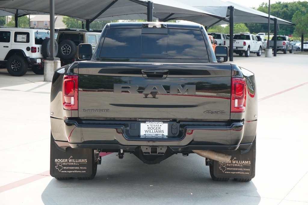 CARFAX One-Owner. Clean CARFAX. This 2025 Ram 3500 Laramie in Diamond Black Crystal Pearlcoat comes with the following features: 6.7L I6 8-Speed Automatic 4WD Laramie Level 2 Plus Equipment Group (#1 Seat Foam Cushion, 115V Auxiliary Rear Power Outlet, 14.4" Touchscreen Display, 17 Speaker harman/kardon Premium Sound, 2 Way Rear Headrest Seat, 2nd Row In Floor Storage Bins, 4 Way Front Headrests, 4G LTE Wi-Fi Hot Spot, Active Lane Management System, Adaptive Steering System, Alexa Built-In, Apple CarPlay, Auto Adjust In Reverse Exterior Mirrors, Auto Dimming Exterior Passenger Mirror, Auto High Beam Headlamp Control, Auto Power-Folding Mirrors, Auto-Dimming Exterior Mirrors, Bucket Seats, Chrome Exterior Mirrors, Connected Travel & Traffic Services, Connectivity - US/Canada, CTR Stop Lamp w/Cargo View Camera, Disassociated Touchscreen Display, Drowsy Driver Detection, Dual Wireless Charging Pad, Emergency Vehicle Alert System (EVAS), Exterior Mirrors Courtesy Lamps, Exterior Mirrors w/Heating Element, Exterior Mirrors w/Memory, Exterior Mirrors w/Supplemental Signals, Foam Bottle Insert (Door Trim Panel), Folding Flat Load Floor Storage, For Details Visit DriveUconnect.com, For More Info, Call 800-643-2112, Forward & Reverse Utility Lights, Front Seat Back Map Pockets, Full Length Upgraded Floor Console, Global Telematics Box Module (TBM), Google Android Auto, GPS Antenna Input, GPS Navigation, HD Radio, Heated Front Seats, Heated Steering Wheel, High Back Seats, Integrated Voice Command w/Bluetooth, Leather Trimmed Bucket Seats, LED Bed Lighting, Mirror Running Lights, MOPAR Deployable Bed Step, MOPAR Spray In Bedliner, Off-Road Information Pages, Power 2-Way Driver Lumbar Adjust, Power 2-Way Passenger Lumbar Adjust, Power Adjust 8-Way Driver Seat, Power Adjust 8-Way Front Passenger Seat, Power Adjust Mirrors, Power Adjustable Pedals w/Memory, Power Deployable Running Boards, Power Heat Fold Memory Telescopic Mirrors, Power Telescoping Mirrors, Power-Adjustable Convex Aux Mirrors, Radio: Uconnect 5 Nav w/14.4" Display, Rain Sensitive Windshield Wipers, Rear 60/40 Folding Seat, Remote Tailgate Release, Selectable Tire Fill Alert, SiriusXM Radio Service, SiriusXM w/360L, Traffic Sign Recognition, and Trailer Tow Pages), Night Edition (Black Exterior Mirrors, Black Exterior Truck Badging, Black Wheel Center Hub, Body Color Grille Surround, Gloss Black Grille Billets/Accents, and Sport Performance Hood), Quick Order Package 24H Laramie, 10 Speakers, 3.42 Axle Ratio, 3.73 Axle Ratio, 4-Wheel Disc Brakes, 50 Gallon Fuel Tank, 5th Wheel/Gooseneck Towing Prep Group, 6000# Front Axle w/Hub Ext, ABS brakes, Air Conditioning, Alloy wheels, AM/FM radio: SiriusXM with 360L, Apple CarPlay/Android Auto, Auto-dimming Rear-View mirror, Automatic temperature control, Box & Rear Fender Clearance Lamps, Brake assist, Bumpers: body-color, Center Hub, Clearance Lamps, Compass, Delay-off headlights, Driver door bin, Driver vanity mirror, Dual front impact airbags, Dual front side impact airbags, Dual Rear Wheels, Electronic Stability Control, Front anti-roll bar, Front Center Armrest w/Storage, Front dual zone A/C, Front fog lights, Front License Plate Bracket, Front reading lights, Fully automatic headlights, Garage door transmitter, Heated door mirrors, Heated front seats, Heated steering wheel, Illuminated entry, Leather Trim 40/20/40 Bench Seat, Low tire pressure warning, MOPAR Front & Rear Rubber Floor Mats, Navigation System, Occupant sensing airbag, Outside temperature display, Overhead airbag, Overhead console, Panic alarm, ParkView Rear Back-Up Camera, Passenger door bin, Passenger vanity mirror, Power door mirrors, Power driver seat, Power passenger seat, Power steering, Power windows, Radio data system, Radio: Uconnect 5 Nav w/12.0" Display, Rear reading lights, Rear seat center armrest, Rear step bumper, Rear window defroster, Remote keyless entry, Security system, Speed control, Split folding rear seat, Steering wheel mounted audio con