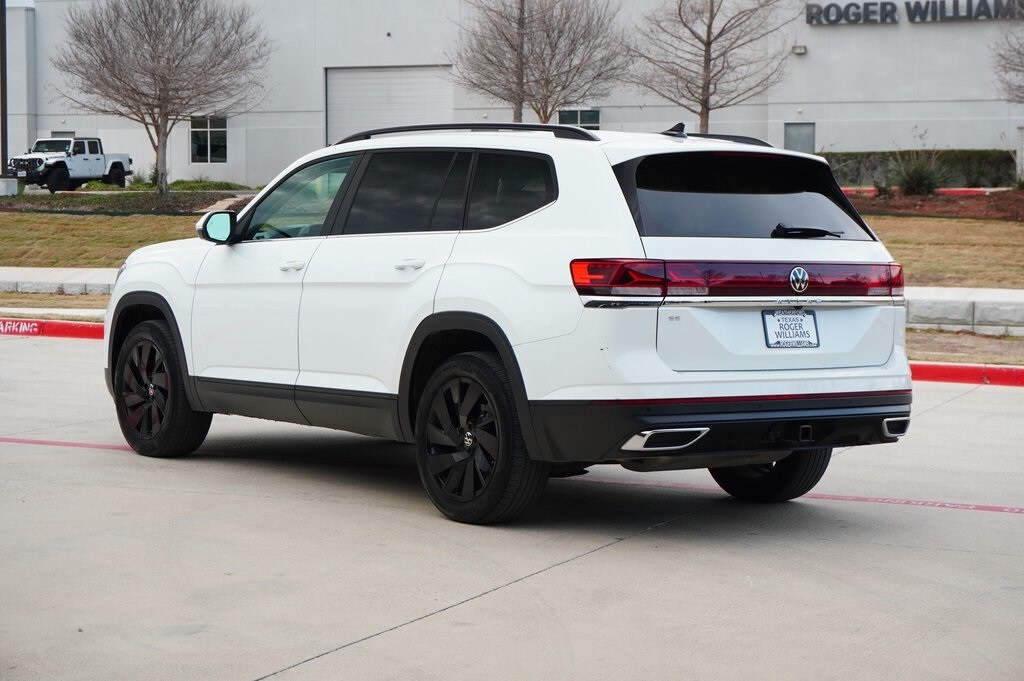 CARFAX One-Owner. This 2024 Volkswagen Atlas 2.0T SE w/Technology in White comes with the following features: 2.0L TSI 8-Speed Automatic with Tiptronic FWD 3.60 Axle Ratio, 3rd row seats: split-bench, 4-Wheel Disc Brakes, 6 Speakers, ABS brakes, Air Conditioning, Alloy wheels, AM/FM radio: SiriusXM with 360L, Auto-dimming Rear-View mirror, Automatic temperature control, Brake assist, Bumpers: body-color, Compass, Delay-off headlights, Driver door bin, Driver vanity mirror, Dual front impact airbags, Dual front side impact airbags, Electronic Stability Control, Emergency communication system: VW Car-Net Safe & Secure 5-year, Exterior Parking Camera Rear, Four wheel independent suspension, Front anti-roll bar, Front Bucket Seats, Front Center Armrest, Front dual zone A/C, Front fog lights, Front reading lights, Fully automatic headlights, Heated door mirrors, Heated front seats, Heated steering wheel, Heated/Actively Ventilated Front Bucket Seats, Illuminated entry, Low tire pressure warning, Occupant sensing airbag, Outside temperature display, Overhead airbag, Overhead console, Panic alarm, Passenger door bin, Passenger vanity mirror, Perforated V-Tex Leatherette Seating Surfaces, Power door mirrors, Power driver seat, Power Liftgate, Power steering, Power windows, Radio data system, Radio: MIB3 Composition Media, Rain sensing wipers, Rear air conditioning, Rear anti-roll bar, Rear reading lights, Rear seat center armrest, Rear window defroster, Rear window wiper, Remote keyless entry, Security system, Speed control, Speed-sensing steering, Split folding rear seat, Spoiler, Standard Suspension, Steering wheel mounted audio controls, Tachometer, Telescoping steering wheel, Tilt steering wheel, Traction control, Trip computer, Turn signal indicator mirrors, Variably intermittent wipers, Ventilated front seats, and Wheels: 20" 2-Tone Machined Alloy.